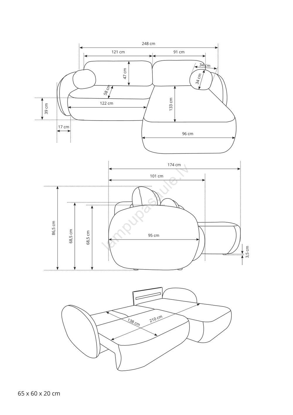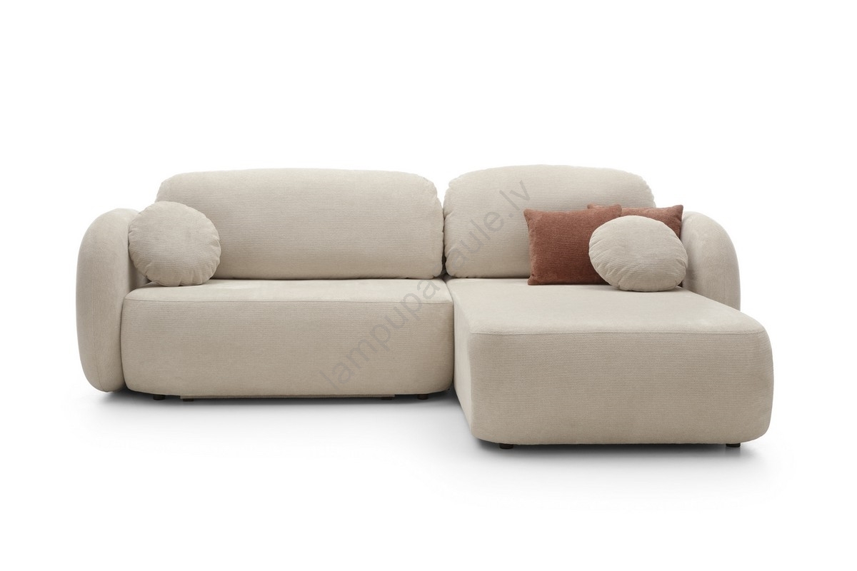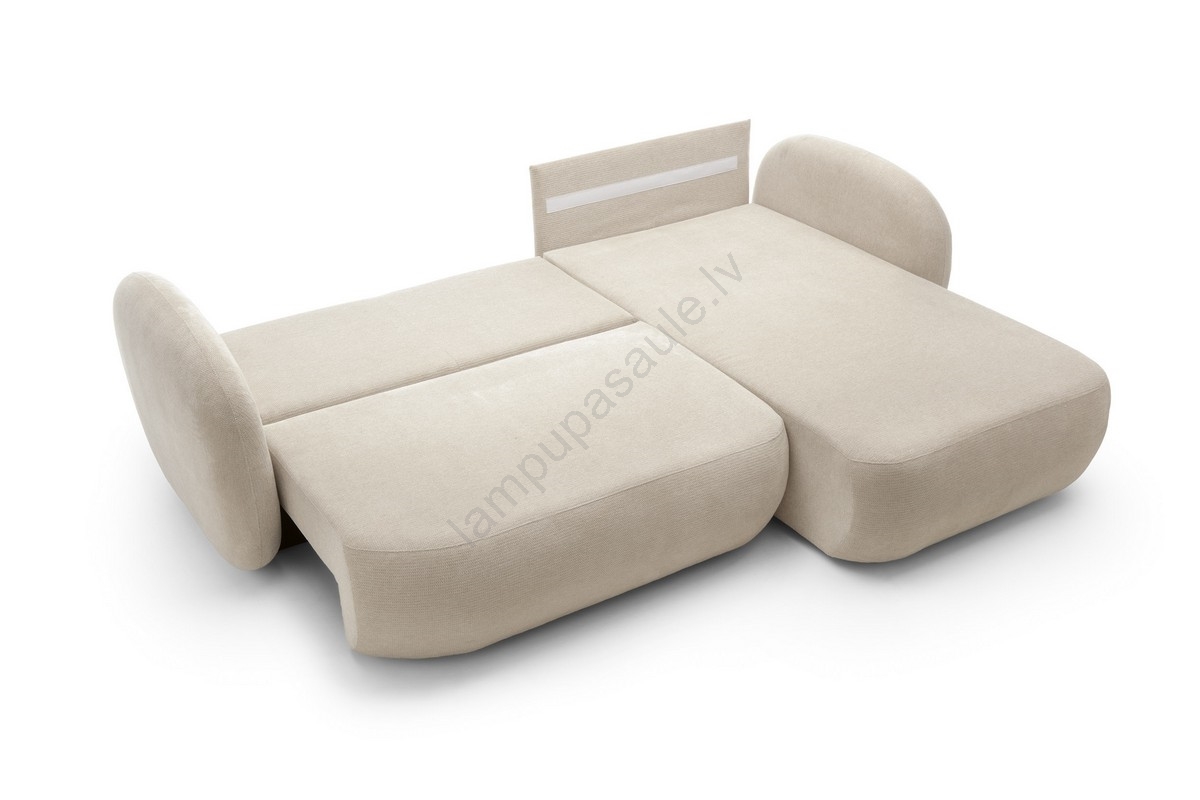 • Moderns izvelkamais stūra dīvāns OLBIA (labais stūris) ir ideāla izvēle ikvienam, kas meklē stila, ērtuma un praktiskuma kombināciju.