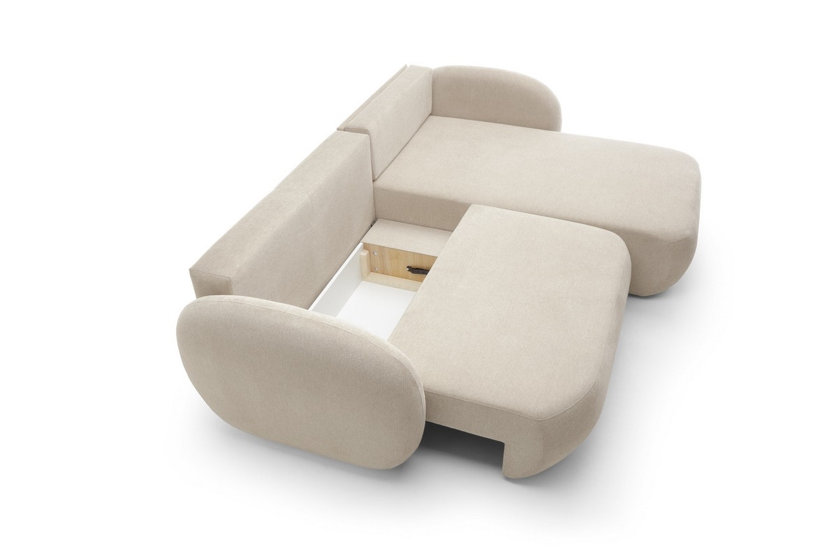 • L veida izvelkamais stūra dīvāns OLBIA ar uzglabāšanas nodalījumu, labais stūris, bēšs