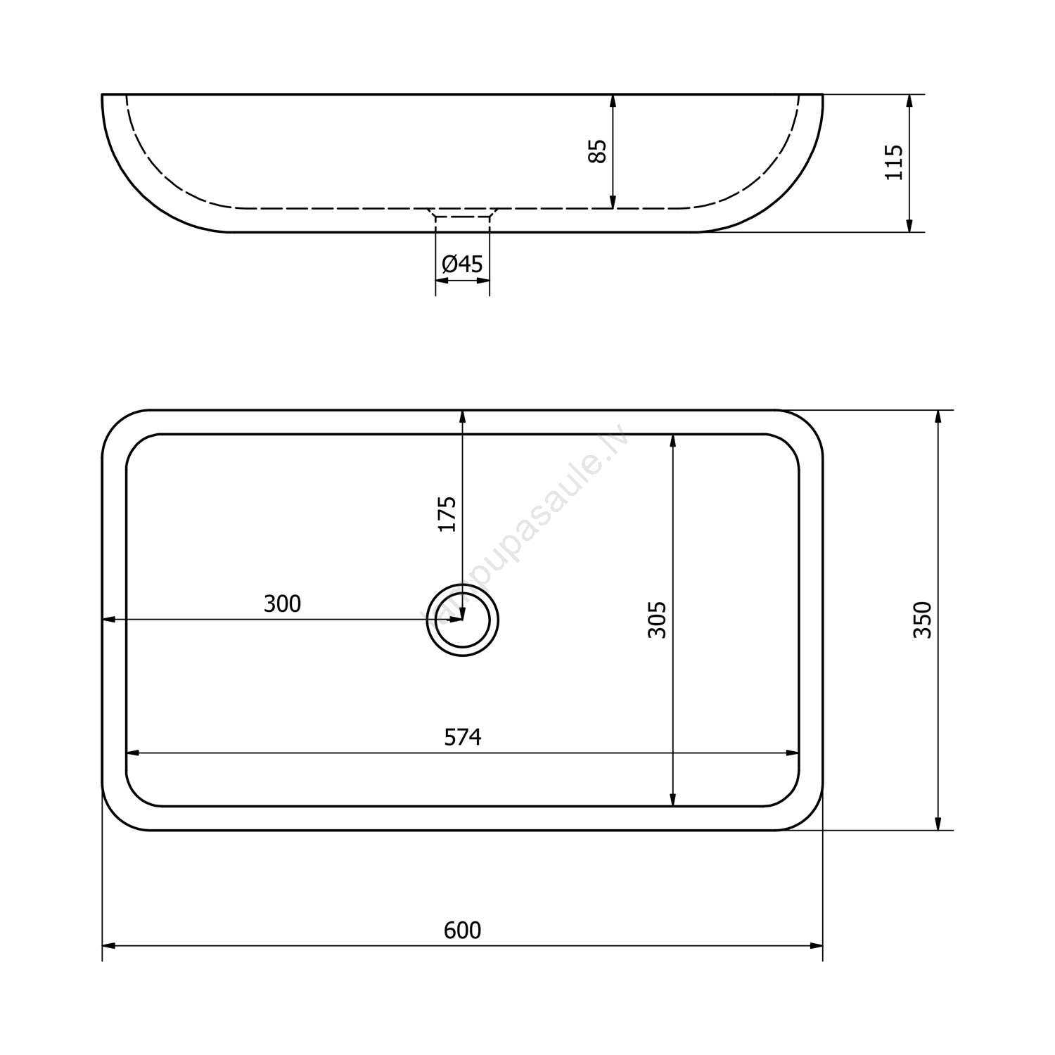 Sapho - BLOK virsmas izlietne 60x35 cm akmens/matēta melna