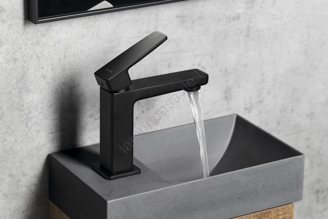 • Šis melnā matētā krāsā izlietnes jaucējkrāns piešķir mūsdienīgu izskatu.
