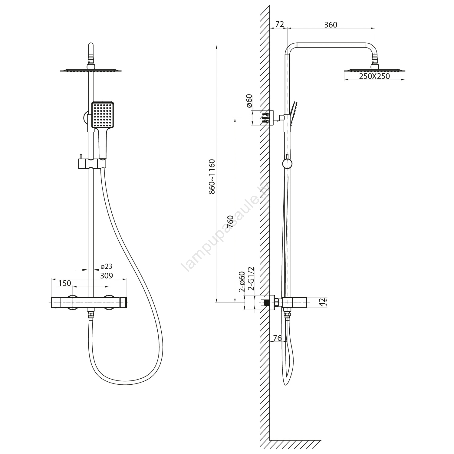 Sapho - matēts melns dušas komplekts ar jaucējkrānu CUBEMIX | Lampupasaule