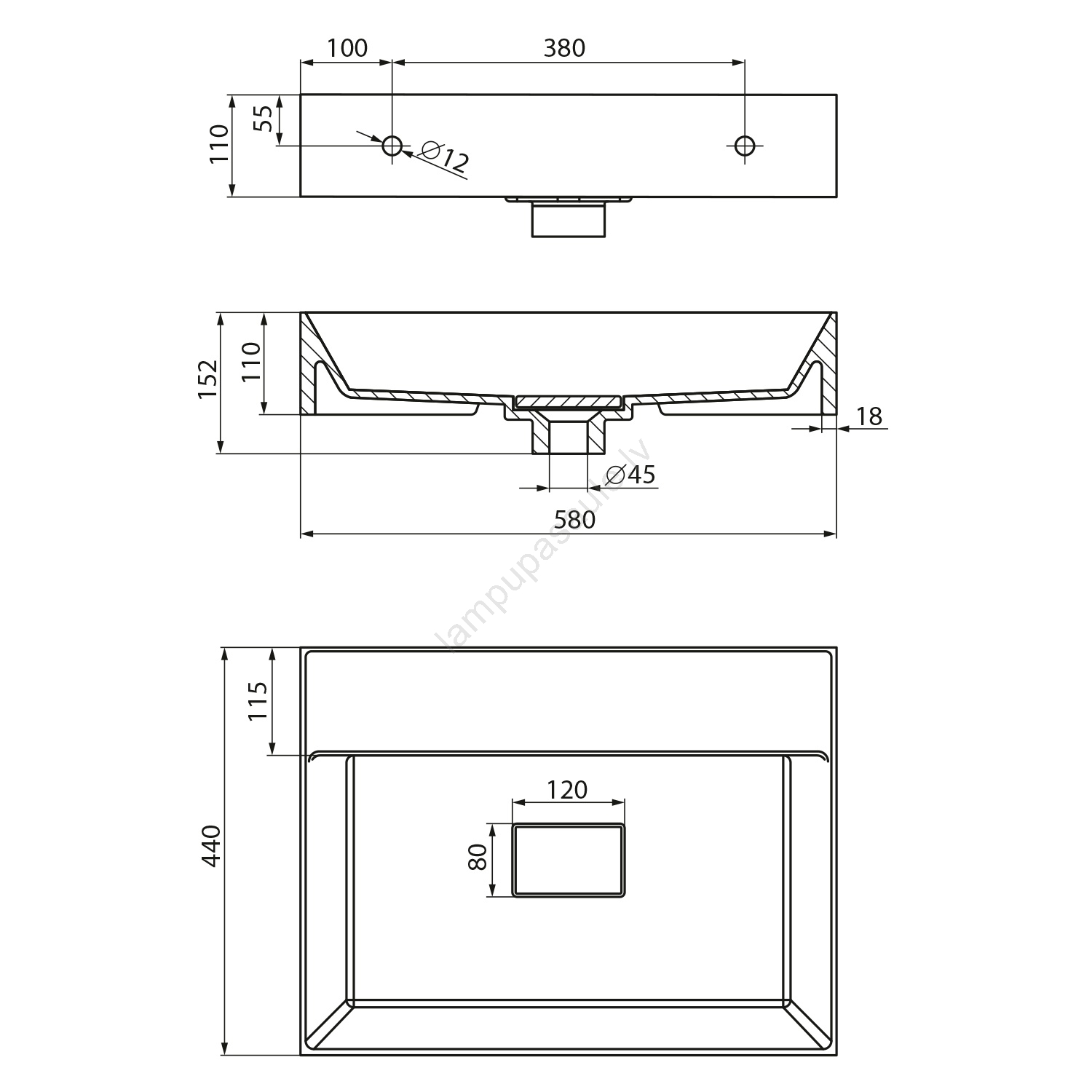 Sapho - Sienas uzstādāma izlietne GODIVA 58x44 cm marmors/balta | Lampupasaule