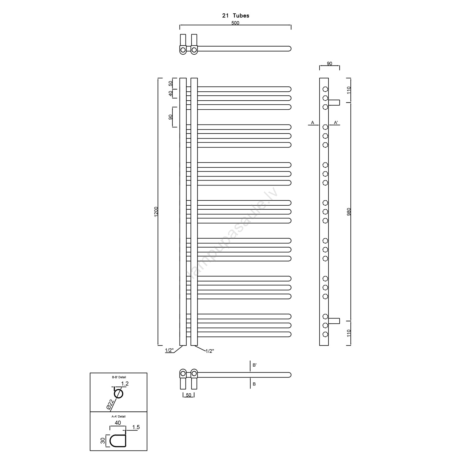 Sapho - vannas istabas dvieļu žāvētājs DORLION 400W/230V 50x120 cm matēts melns