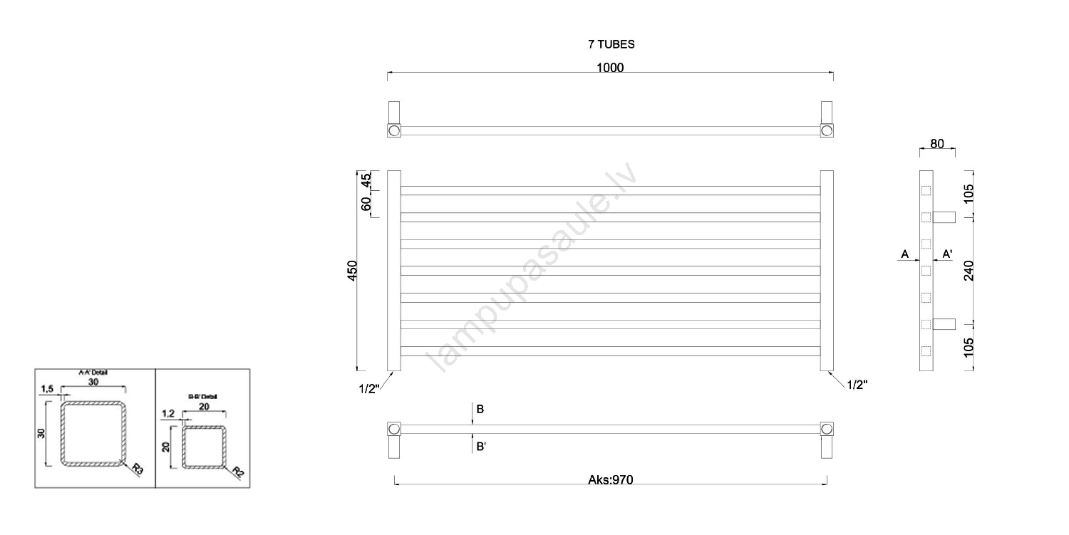 Sapho - Vannas istabas radiators METRO 45x100 cm, spīdīgs hroms