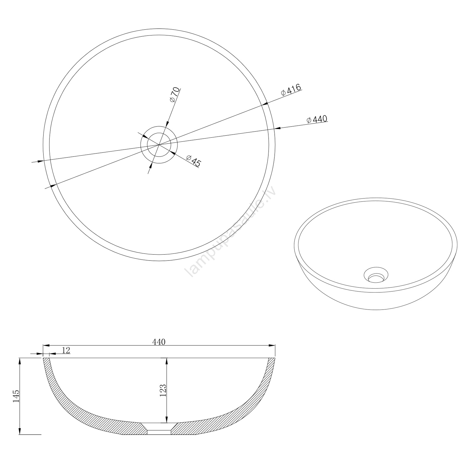 Sapho - Virsmas izlietne TURF Ø 44 cm betons/melnais granīts | Lampupasaule