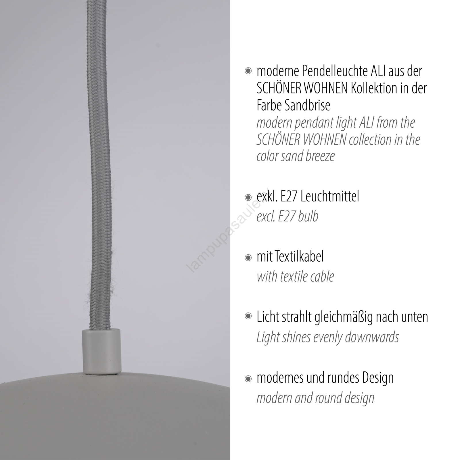 • Schöner Wohnen 11728-39 - Pakaramā lustra ALI 1xE27/25W/230V Ø 38 cm pelēka