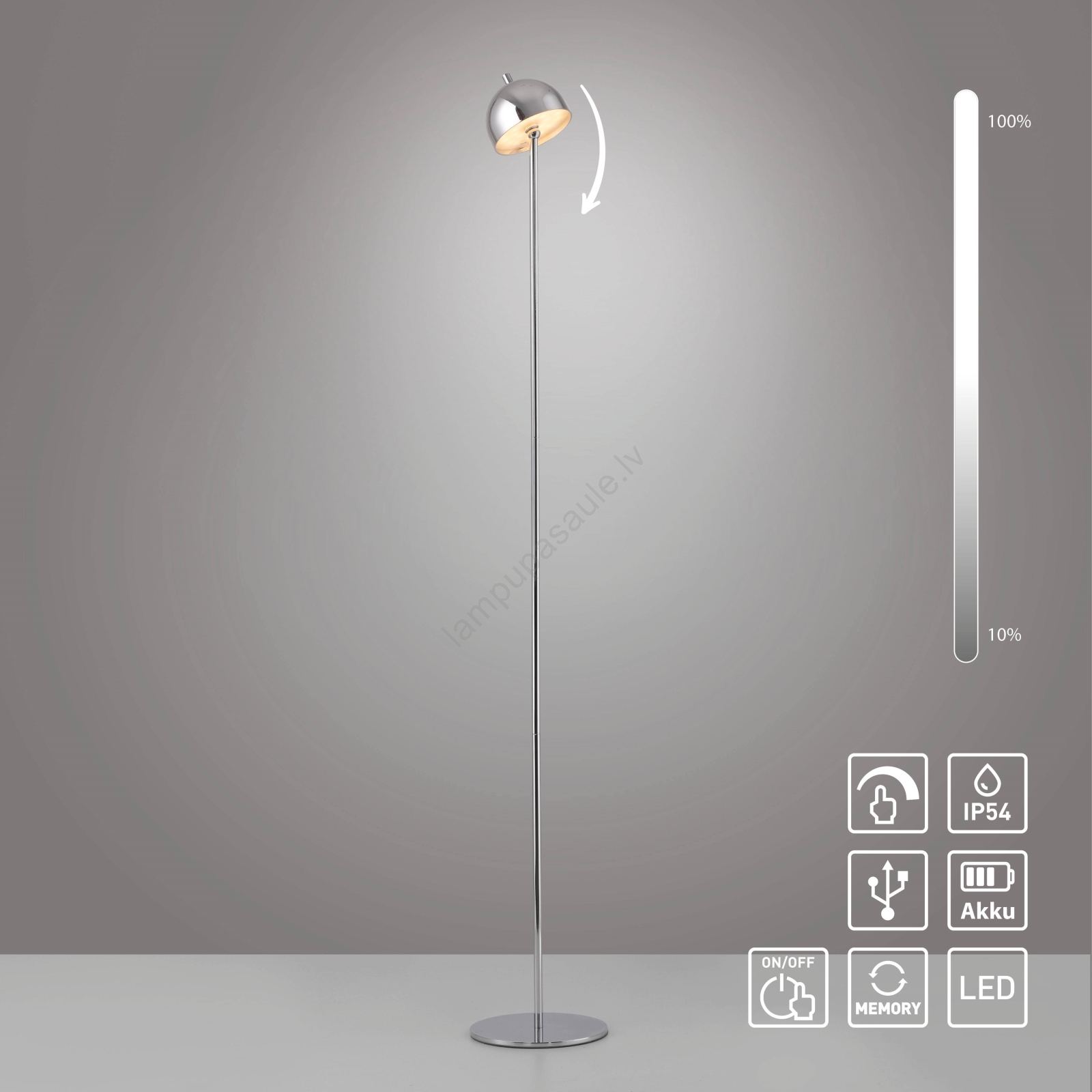 • Schöner Wohnen 19245-17 - BELLIS āra LED stāvlampa, skārienjūtīga un regulējama, uzlādējama, LED/2,5W/5V 2600 mAh IP54, spīdīgs hroms