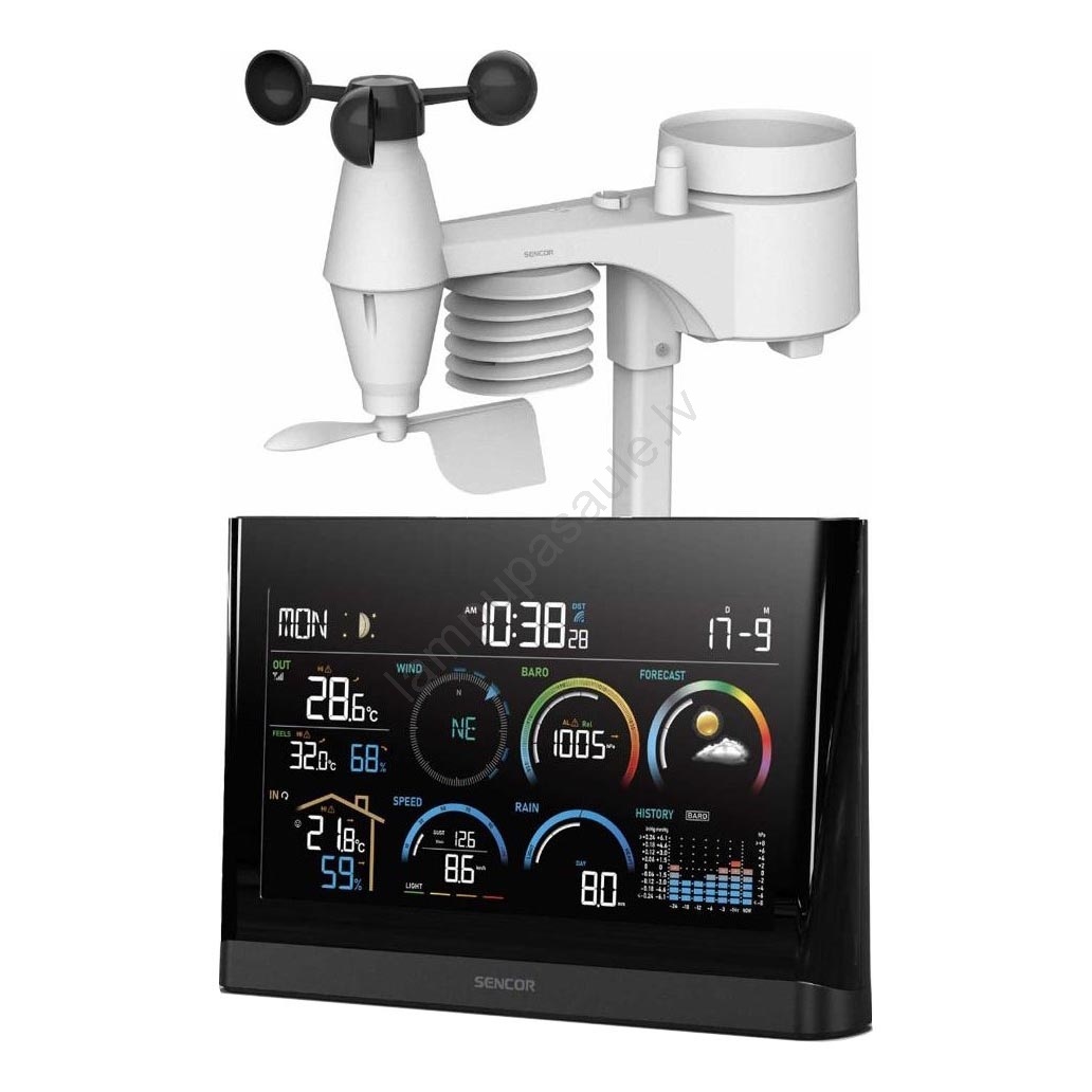 • Praktiska meteoroloģiskā stacija ar bezvadu sensoru 5v1 un krāsainu LCD displeju.