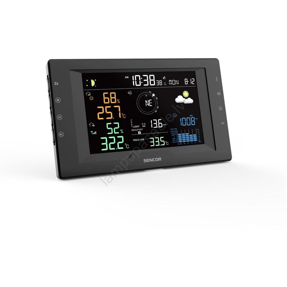 Sencor- profesionāla meteostacija ar krāsainu LCD displeju un modinātāju 5V/1xCR2032 + 3xAA | Lampup