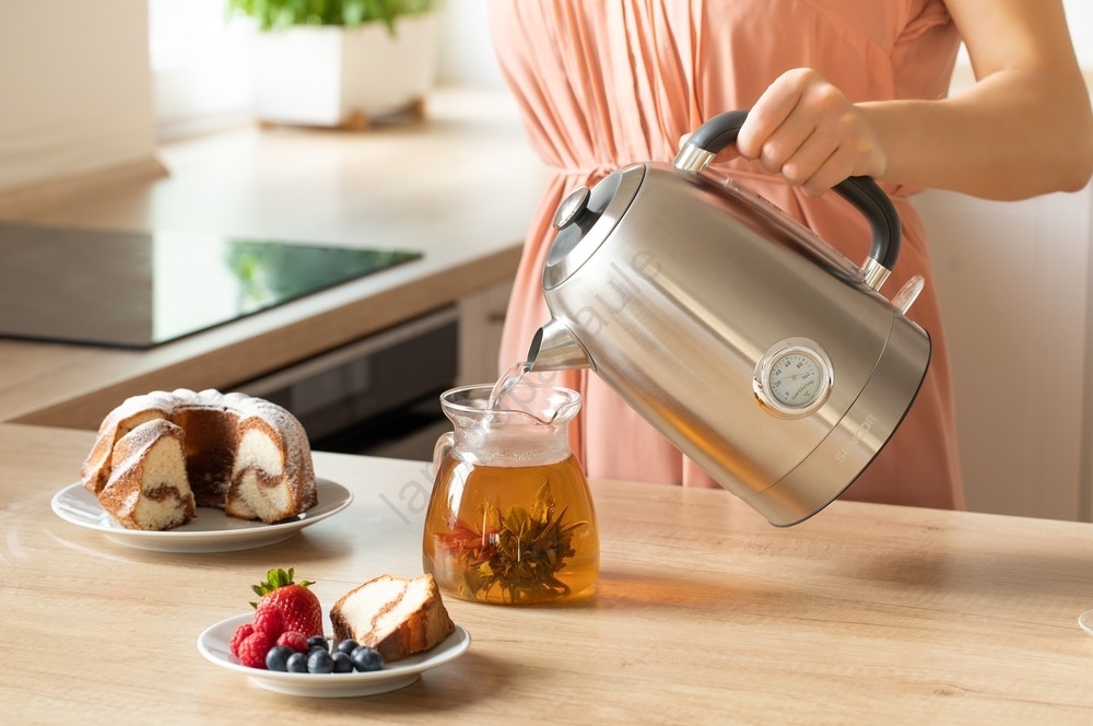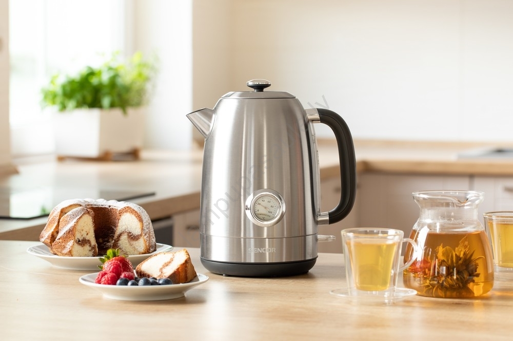 • Tējkanna ar termometru, pateicoties kurai sasniegsiet optimālo temperatūru dažāda veida tējas, kafijas u.c.pagatavošanai