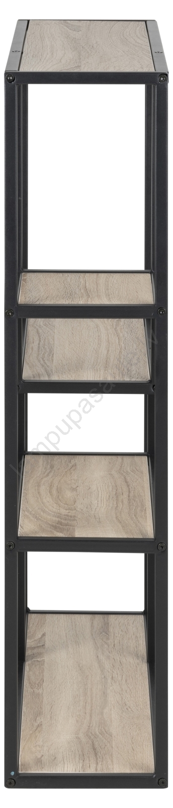 • Rāmis no matētas melnas pulverkrāsotas tērauda, 3 plaukti no sonoma ozola ar asimetriskiem akcentiem.