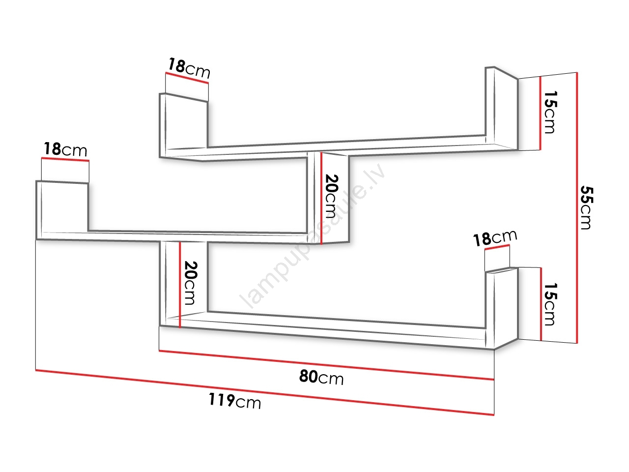 Sienas plaukts TRIO 55x119 cm grafīta melns
