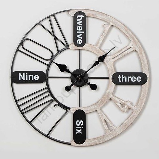 Sienas pulkstenis Ø 60 cm, 1xAA, melna/balta patina