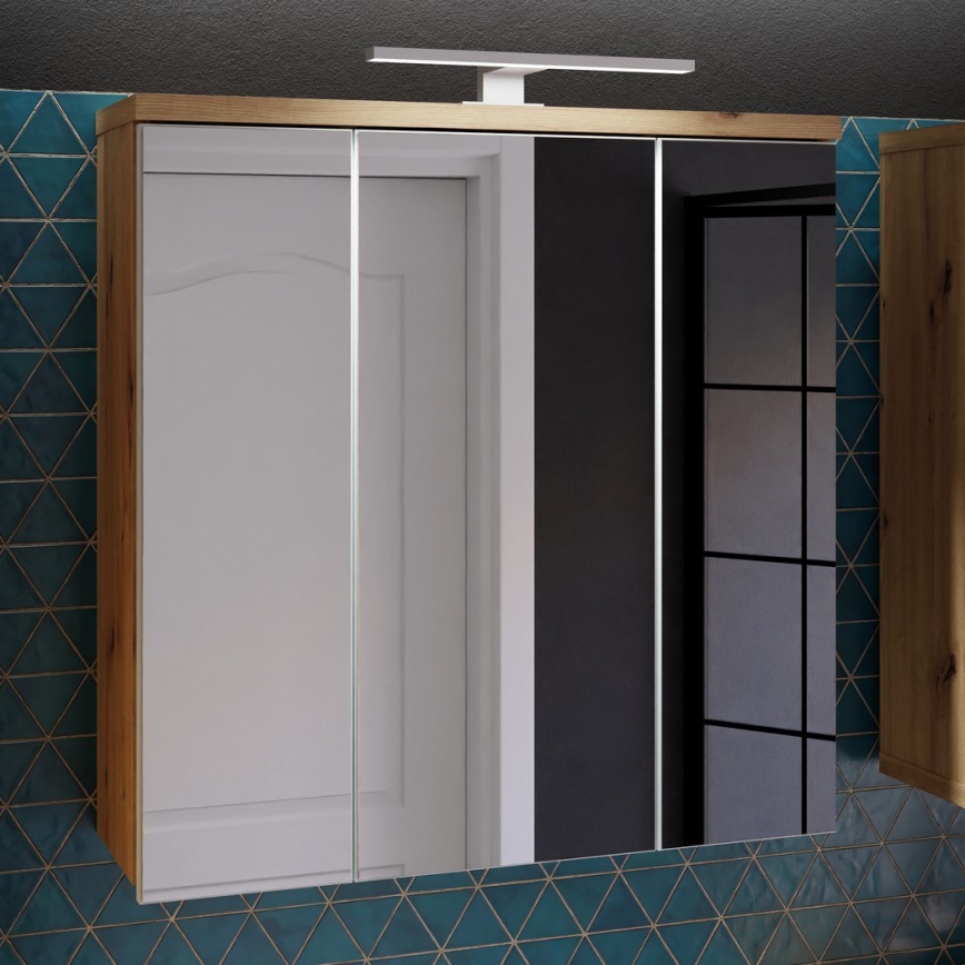 Vannas istabas sienas skapītis ar spoguli VENOM, balts/artisan ozols | Lampupasaule