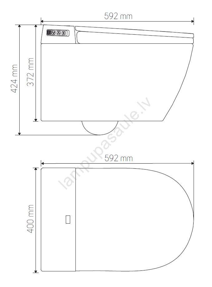 Karājošais tualetes pods ar bidē funkciju 1600W/230V + tualetes sēdeklis + skalošanas poga + modulis