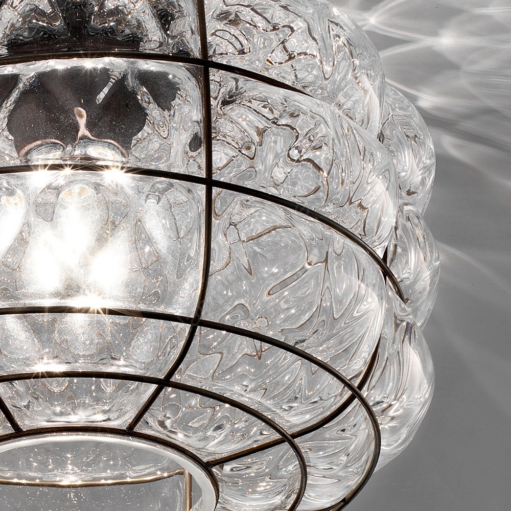 SIRU - Griestu lampa TERRA 1xE27/60W/230V melna/caurspīdīga Venēcijas stikls