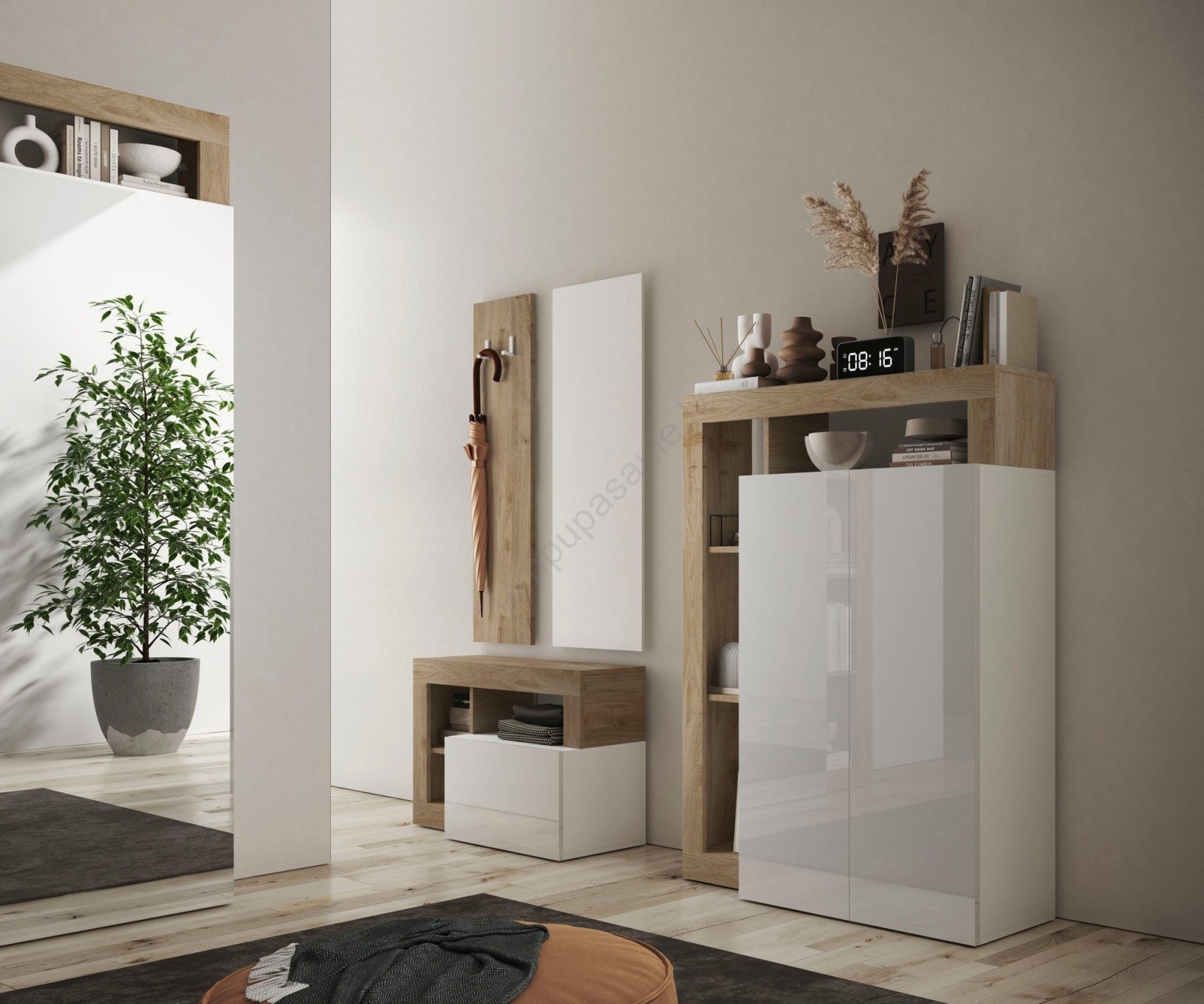 Skapis LENOR balts/gaišs ozols | Lampupasaule