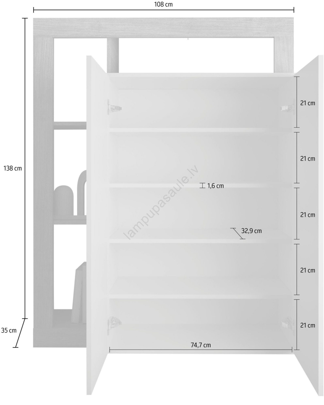 • Aprīkots ar 4 atklātiem plauktiem un 5 iekšējiem nodalījumiem somu, apavu un sezonas lietu uzglabāšanai.