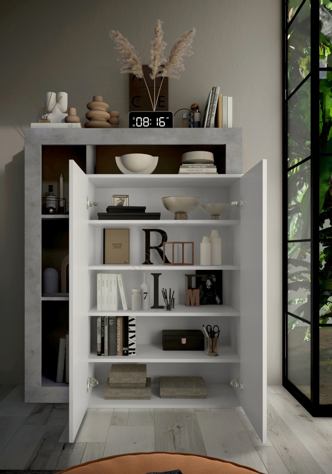 Skapis LENOR balts/pelēks betons | Lampupasaule