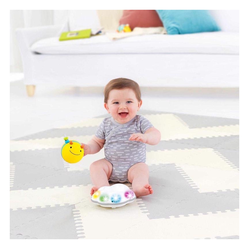 • Interaktīva muzikālā rotaļlieta motivē bērnus rāpot, izmantojot gaismas, kustību un melodijas.