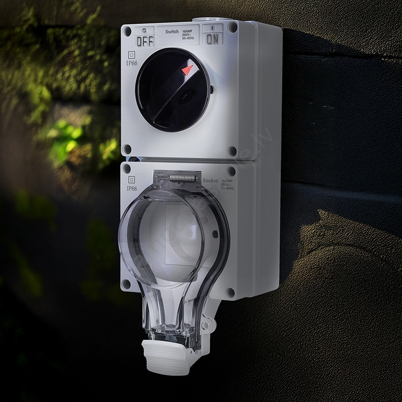 Kontaktligzda mitrai videi ar slēdzi, 230 V/16 A, IP66