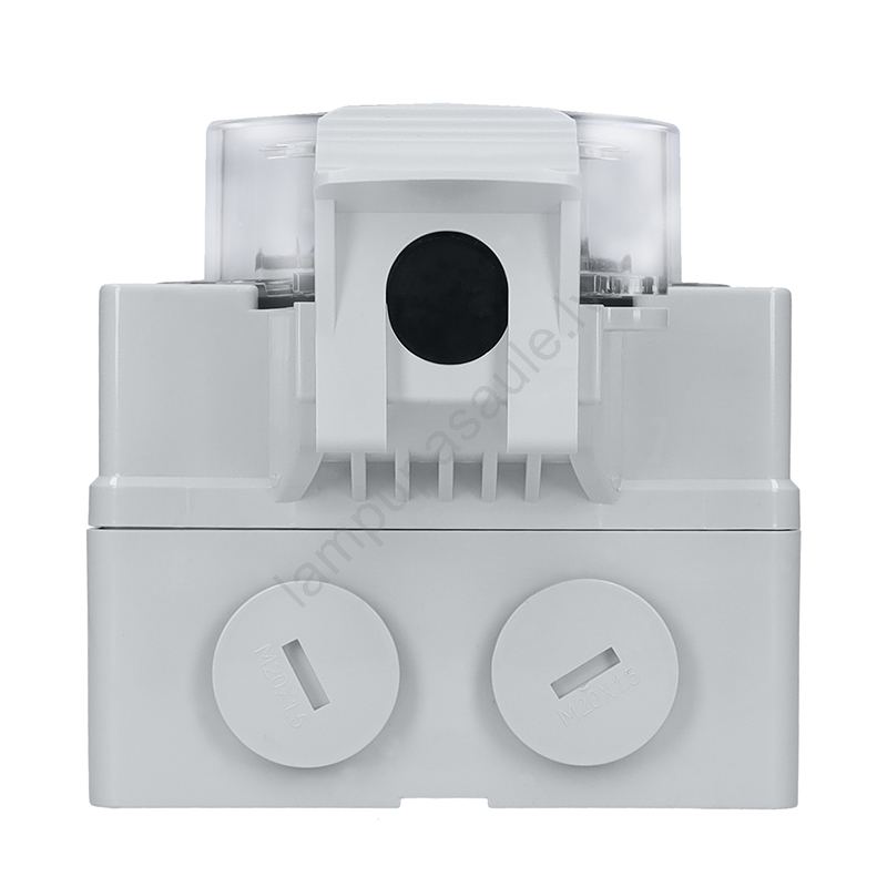 • Skrūvējama ieeja/izeja 2x M20x1,5 ar iekļautām ūdensnecaurlaidīgām skrūvējām aizbāznēm, paredzēta savienošanai ar citām kontaktligzdām vai elektroinstalāciju.