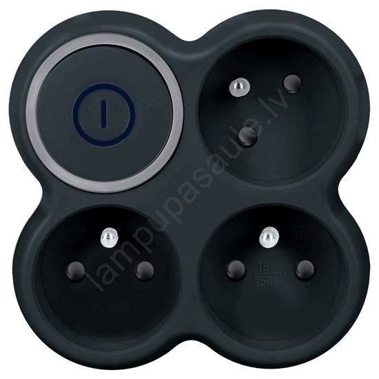 Kontaktligzdas sadalītājs ar slēdzi 3x 10A melns
