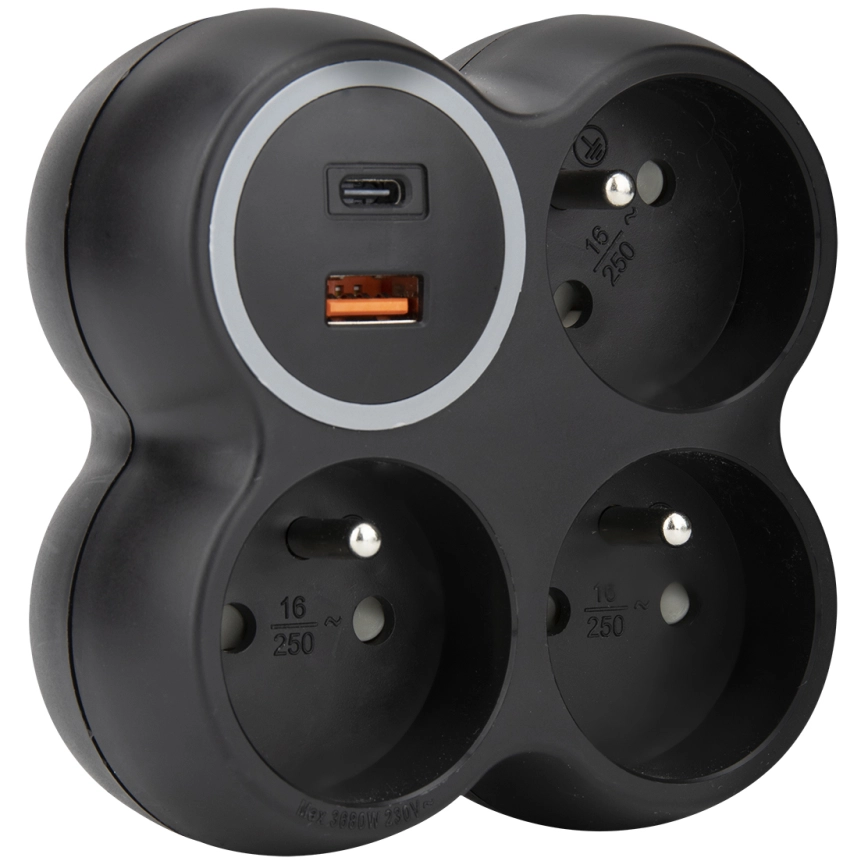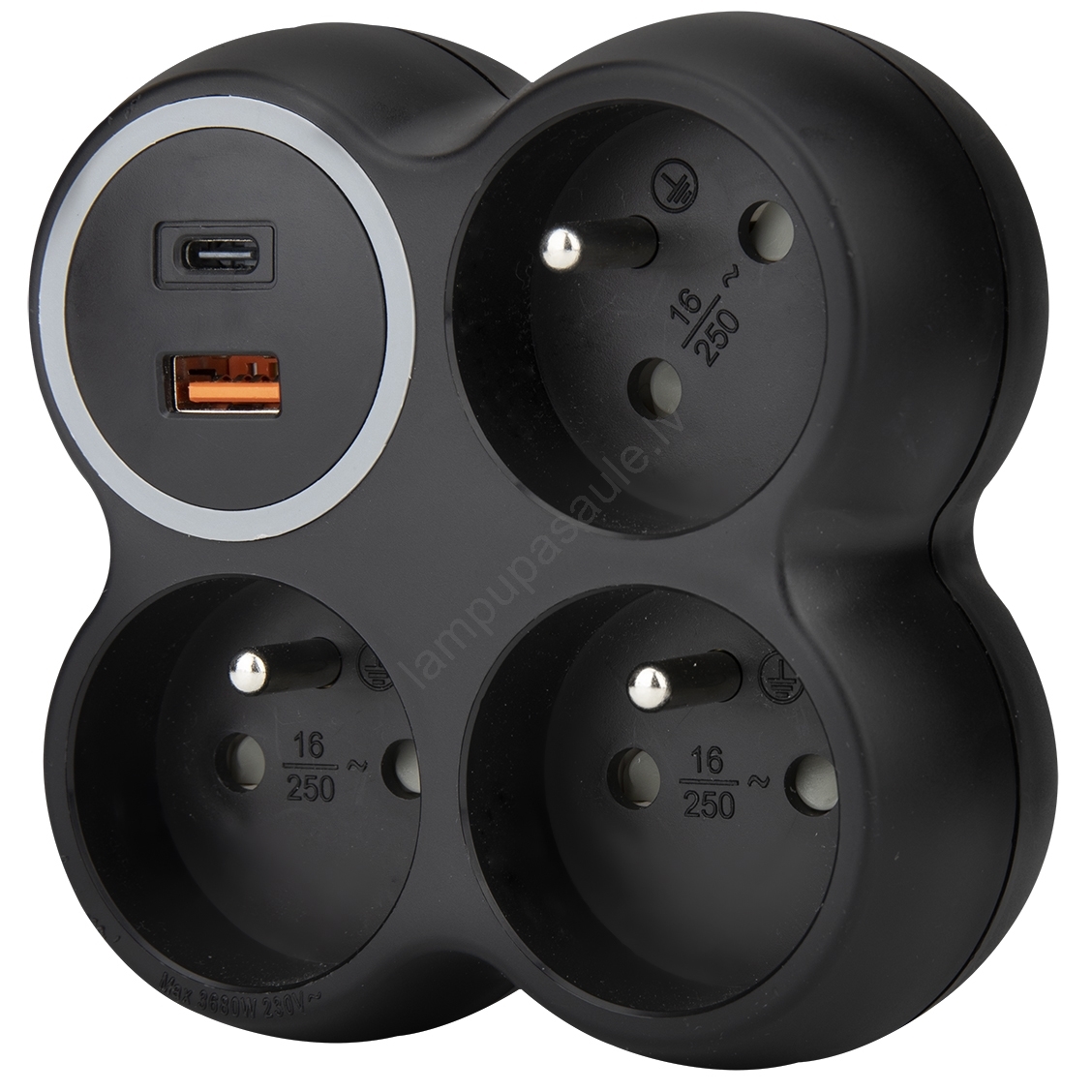 Strāvas sadalītājs 3x 15 A ar USB A un C, melns