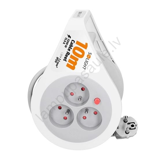 Solight PB25 - pagarinājuma kabelis ar spoli, 3 kontaktligzdas, 10 m | Lampupasaule