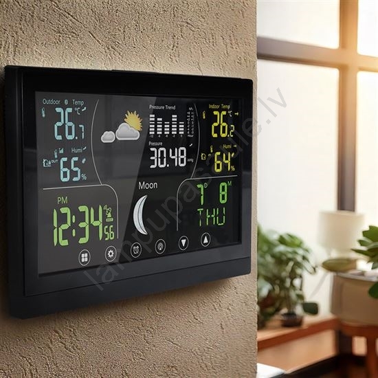 • Meteostacija piedāvā 168 × 93 mm krāsainu VA tipa displeju ar skārienvadību, kas nodrošina izcilu lasāmību un intuitīvu vadību.