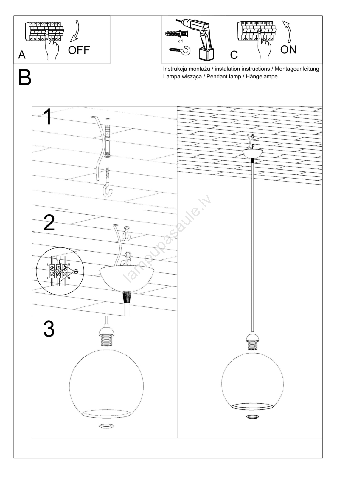 Pakaramā lampa BALL uz troses 1xE27/15W/230V Ø 30 cm balta/spīdīgs hroms izceļas ar jauku un funkcionālu dizainu.  Spuldze ar E27 cokolu irpiemērota lampai. Šeit, varat iegādāties citas spuldzes par izdevīgām cenām. Tā būs interesants jūsu mājas papildinājums.