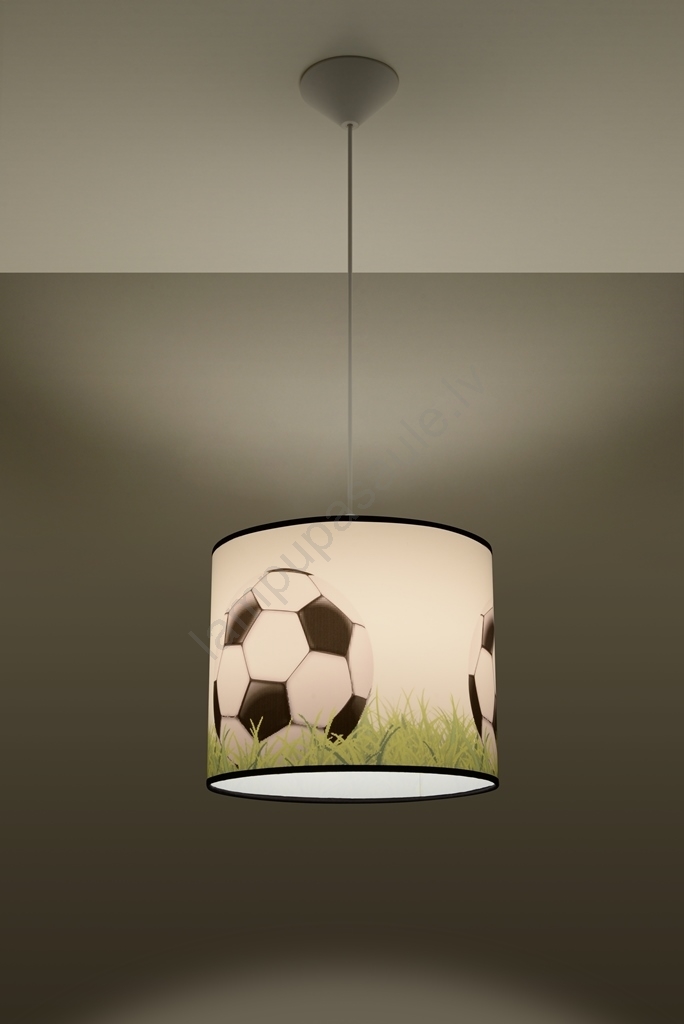 Bērnu lustra ar auklu FOOTBALL 1xE27/15W/230V d. 30 cm futbols izceļas ar jauku un funkcionālu dizainu.  Spuldze ar E27 cokolu irpiemērota lampai. Šeit, varat iegādāties citas spuldzes par izdevīgām cenām. Tā būs interesants jūsu mājas papildinājums.