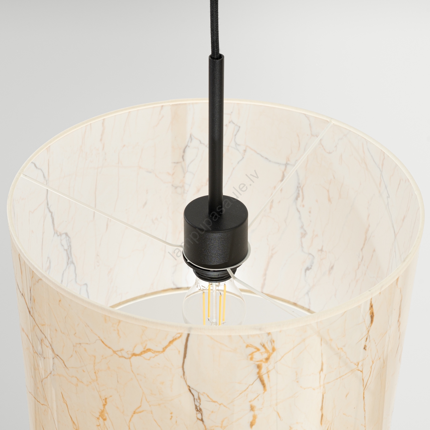 • Pakaramais lukturis uz kabeļa NEVIA 1xE27/15W/230V, diam. 40 cm, bēšs ar marmora dekoru