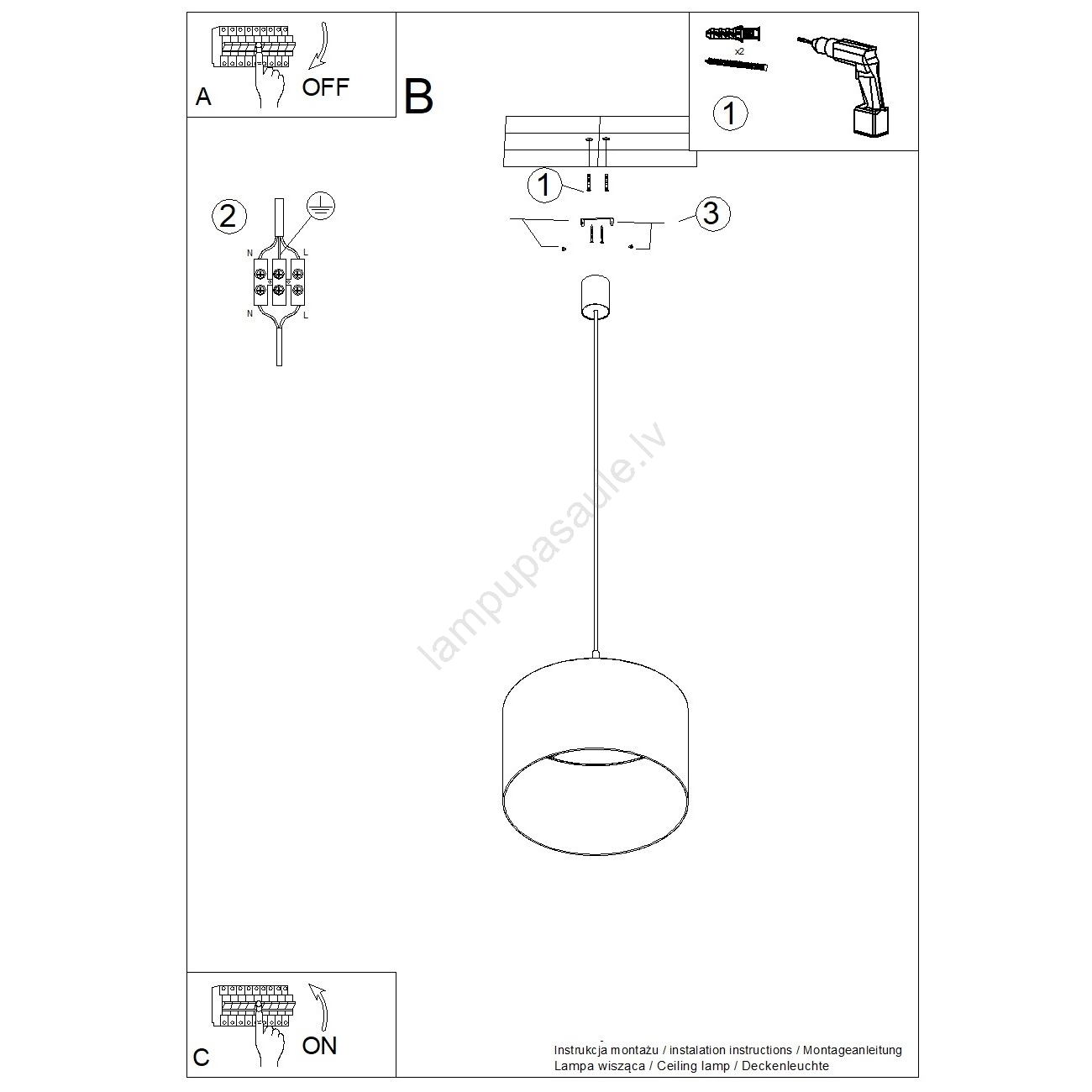 • Pakaramais lukturis uz kabeļa NEVIA 1xE27/15W/230V, diam. 40 cm, bēšs ar marmora dekoru