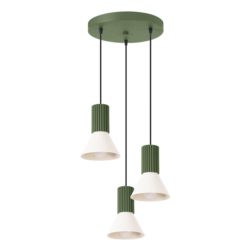 Piekaramā lustra ESTRIA 3xE14/10W/230V Ø 30 cm zaļa izceļas ar jauku un funkcionālu dizainu.  Spuldze ar E14 cokolu irpiemērota lampai. Šeit, varat iegādāties citas spuldzes par izdevīgām cenām. Tā būs interesants jūsu mājas papildinājums.