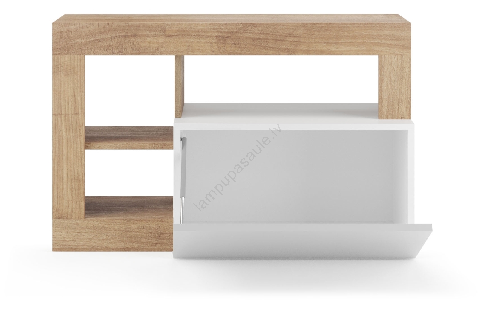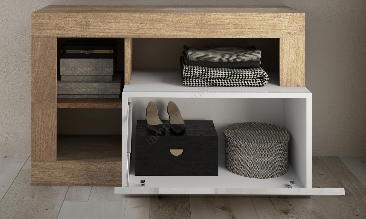 • Aprīkots ar 3 atvērtām plauktām un iekšējo plauktu ar paceļamu vāku somu, apavu un sezonālo mantu uzglabāšanai.