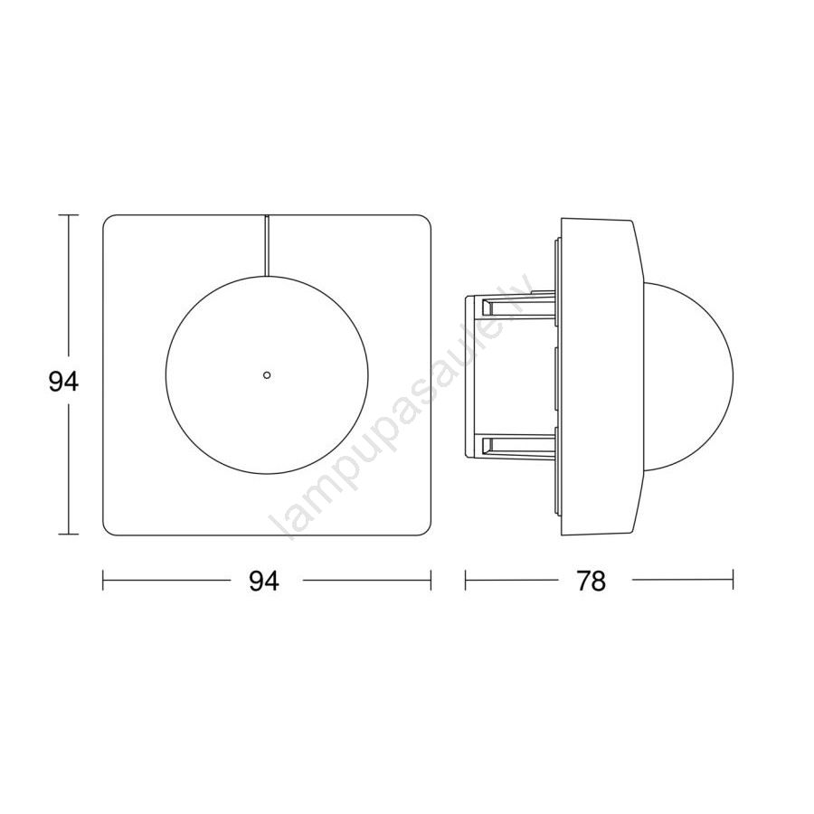 • Iekštelpās iebūvēts infrasarkanais sensors griestu montāžai ar lielu darbības lauku.