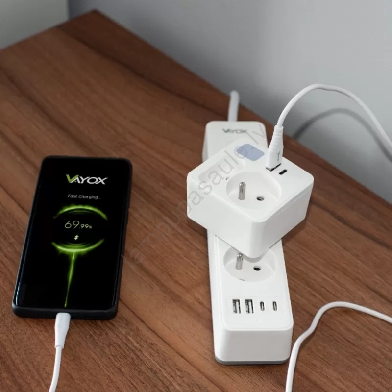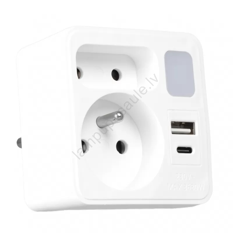 Strāvas sadalītājs ar 2 kontaktligzdām + USB-C + USB-A ar LED apgaismojumu 0,5W/230V 3000K | Lampupa