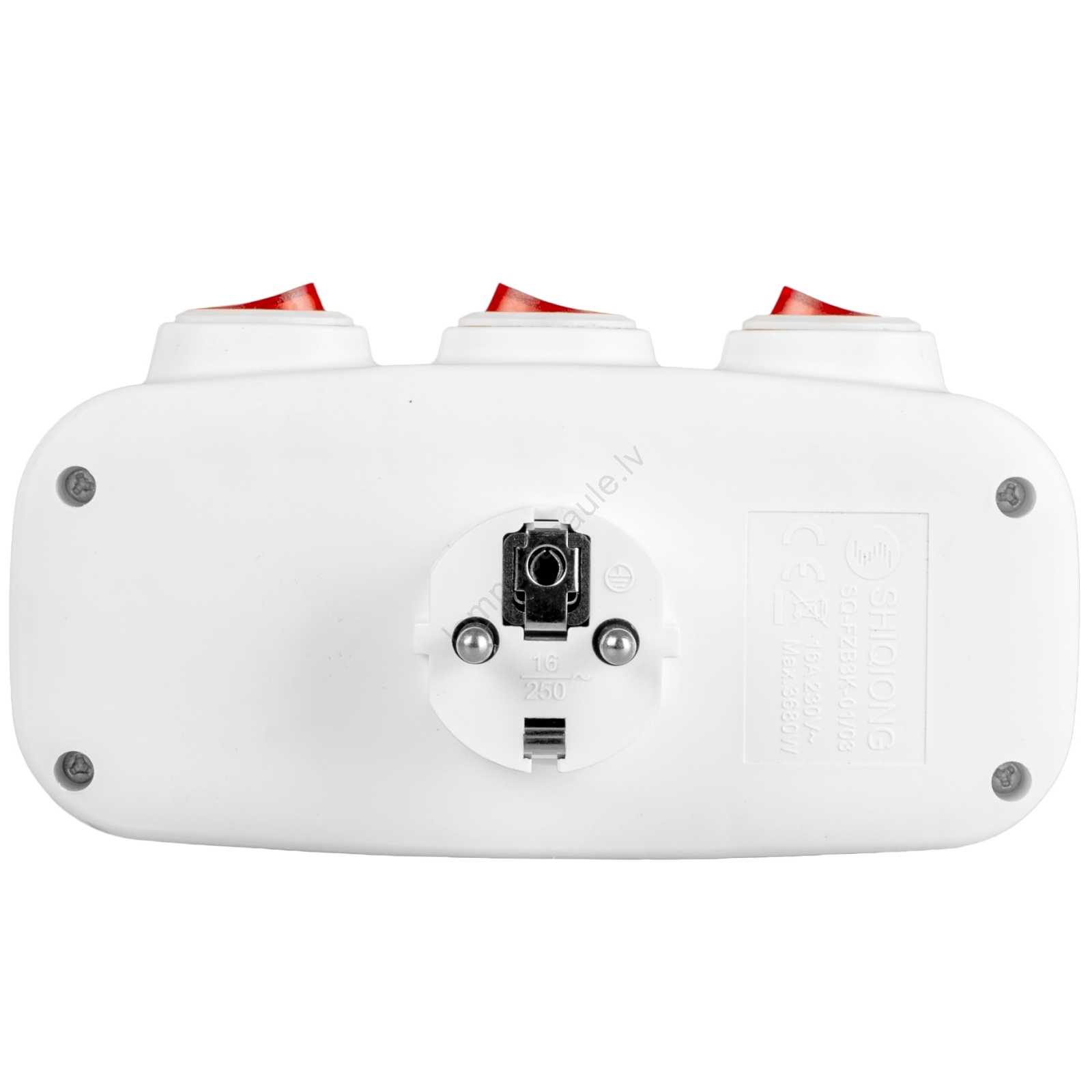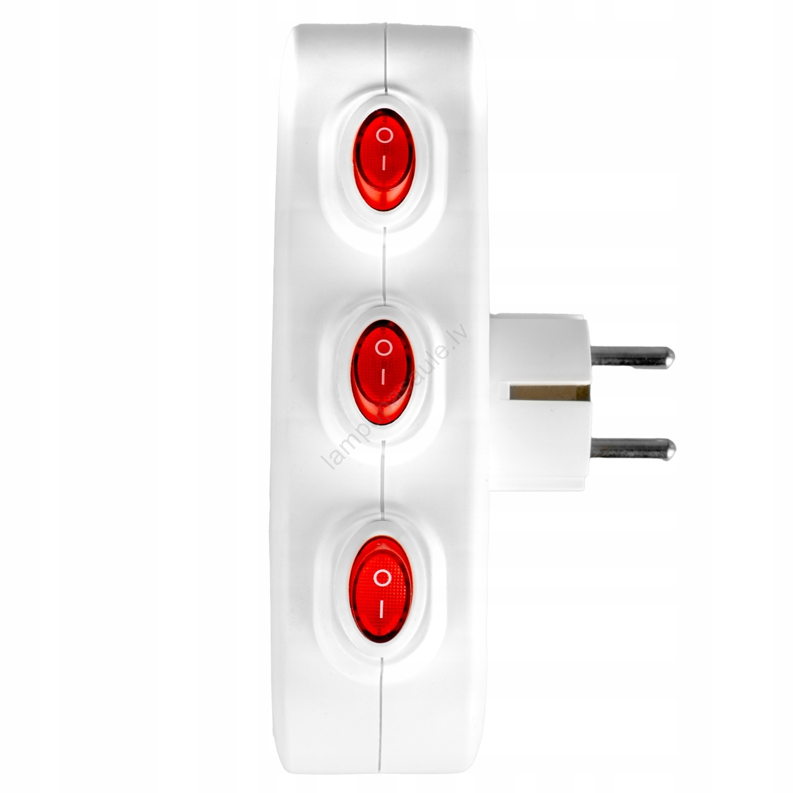 Strāvas sadalītājs ar 3 kontaktligzdām un slēdžiem | Lampupasaule