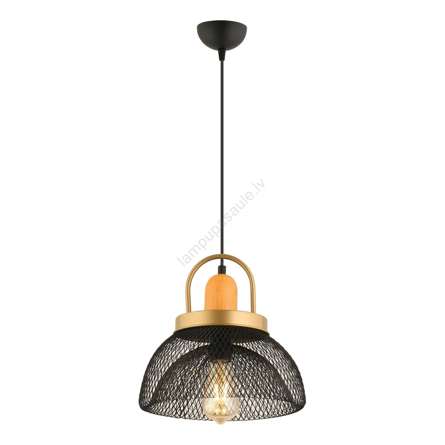 Piekaramā lustra MONZA ar vadu, 1x E27/40W/230V, Ø29 cm, melna/zelta | Lampupasaule