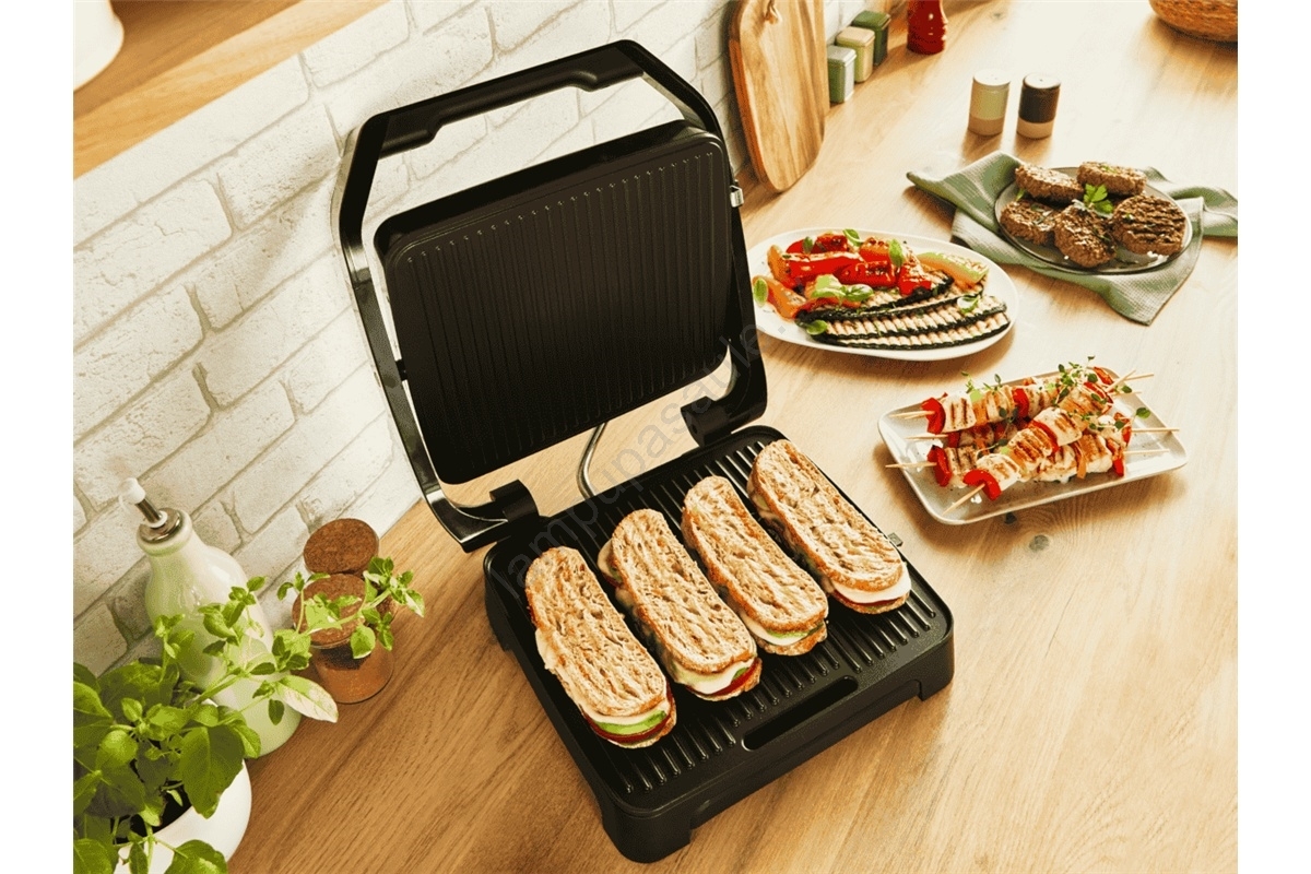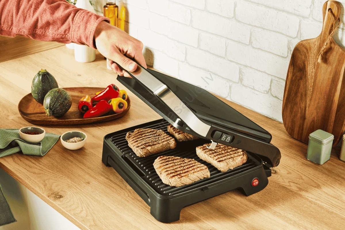 • Kontakta grils „2-v-1“: apvieno panini grila un klasiskā grila funkcijas – tādējādi viegli pagatavosiet sendvičus, gaļu, dārzeņus un lielākas porcijas.