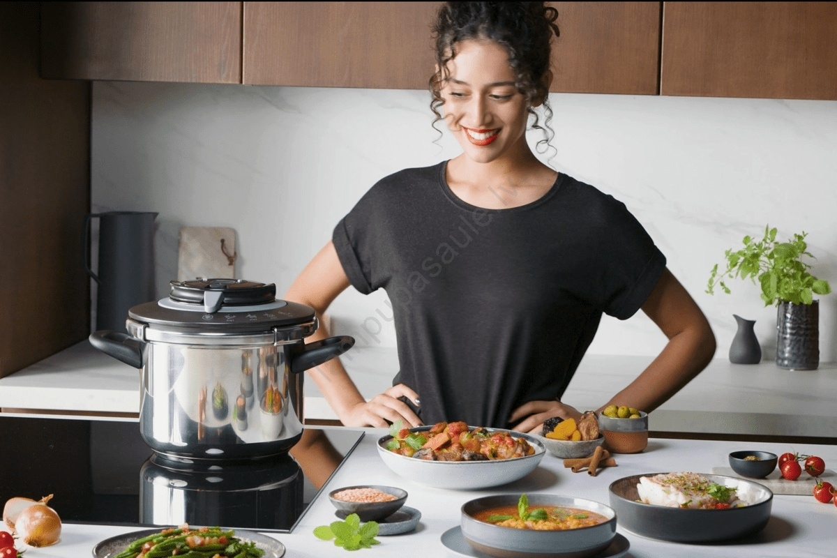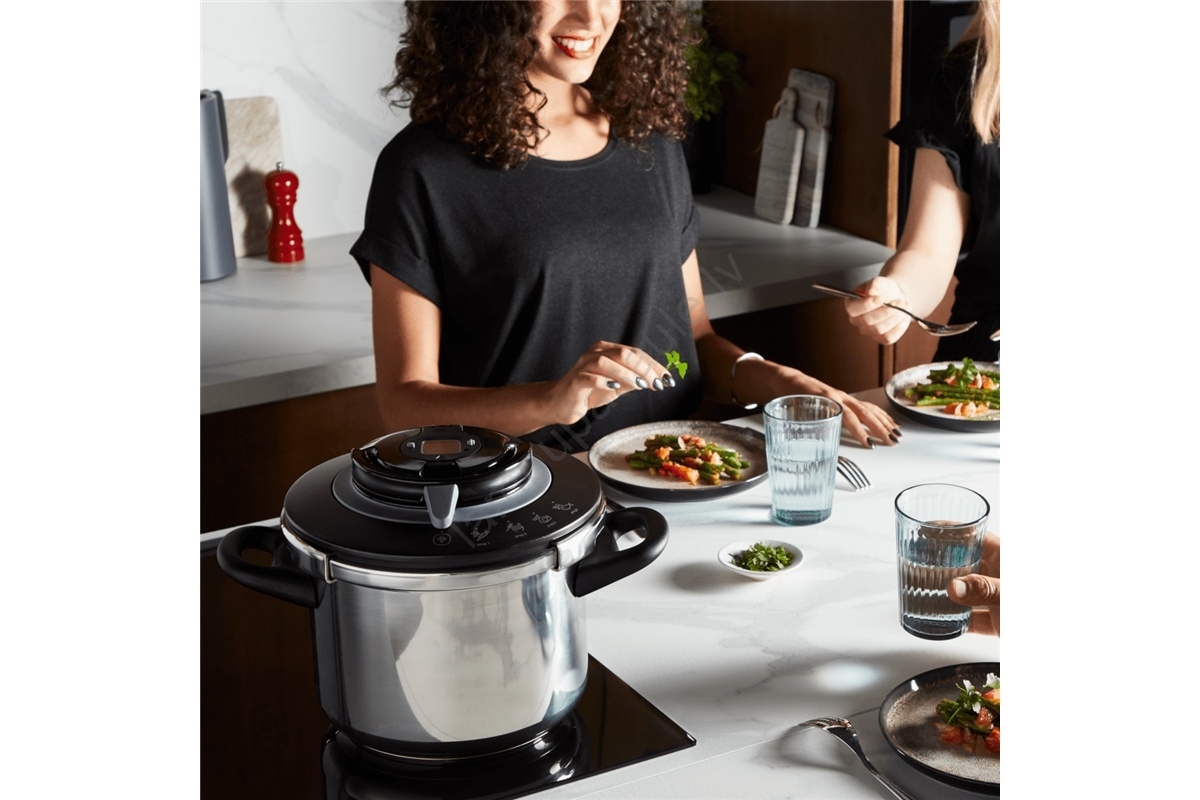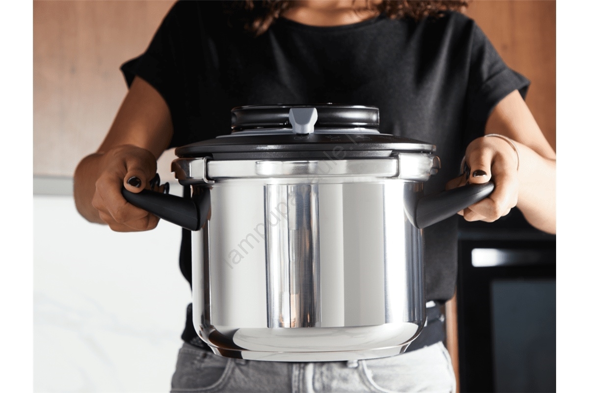 • Tas ļauj gatavot līdz pat divreiz ātrāk nekā parastajā katlā, pateicoties spiediena mehānismam.