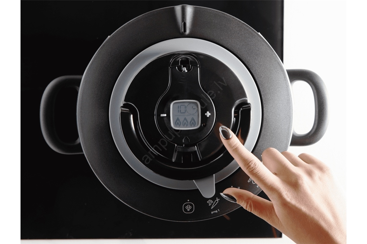 • Komplektā ietilpst noņemams automātisks taimeris, kas ieskanas pēc tvaika atbrīvošanas un norāda, ka vāku var droši atvērt.