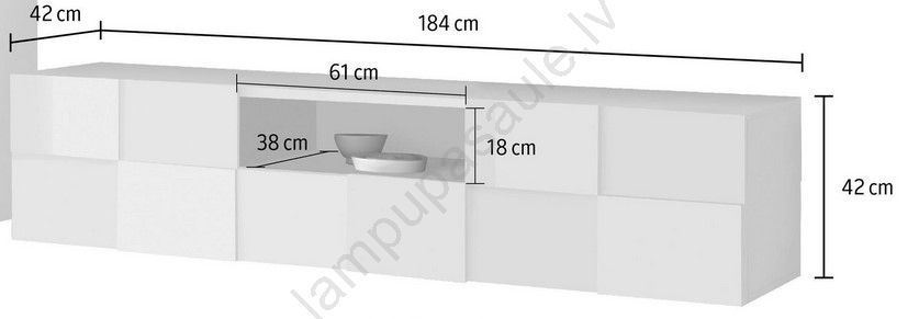 • Pateicoties garajam taisnstūra veidam, tas ir ideāli piemērots izvietošanai zem pie sienas piestiprināta televizora vai kā mūsdienīgs uzglabāšanas risinājums viesistabai.