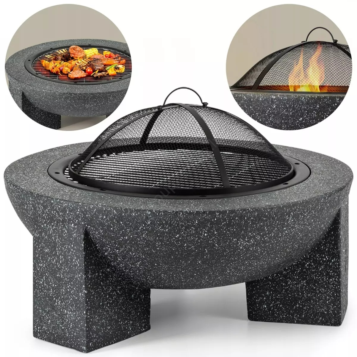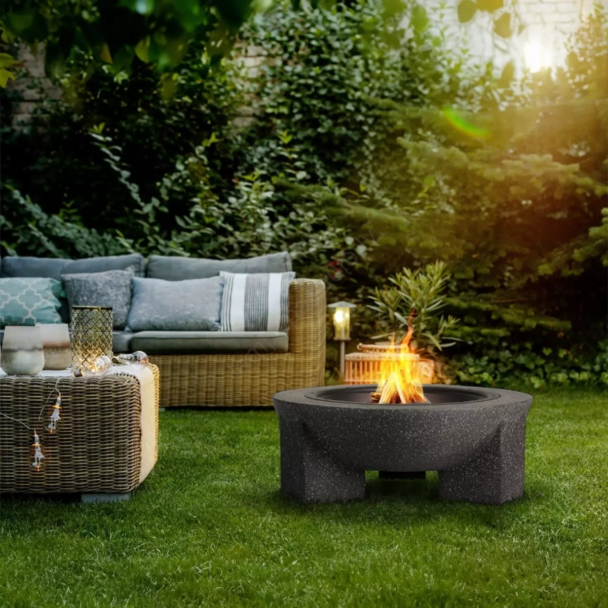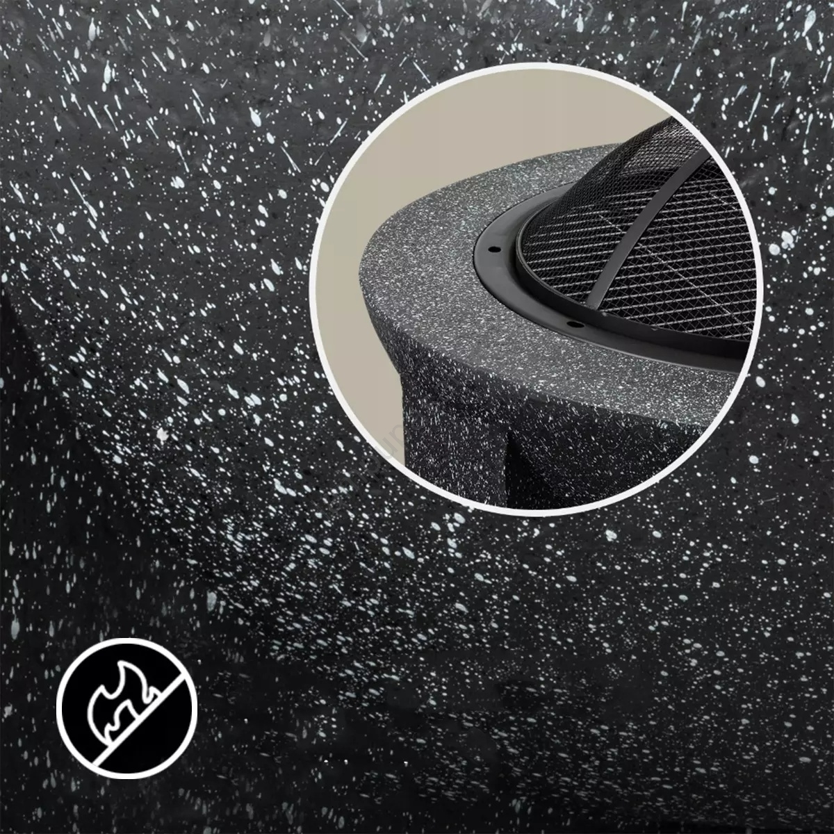 • Ugunskura trauks izgatavots no karstumizturīga materiāla (krāsots tērauds un magnija oksīds), kas imitē betonu.