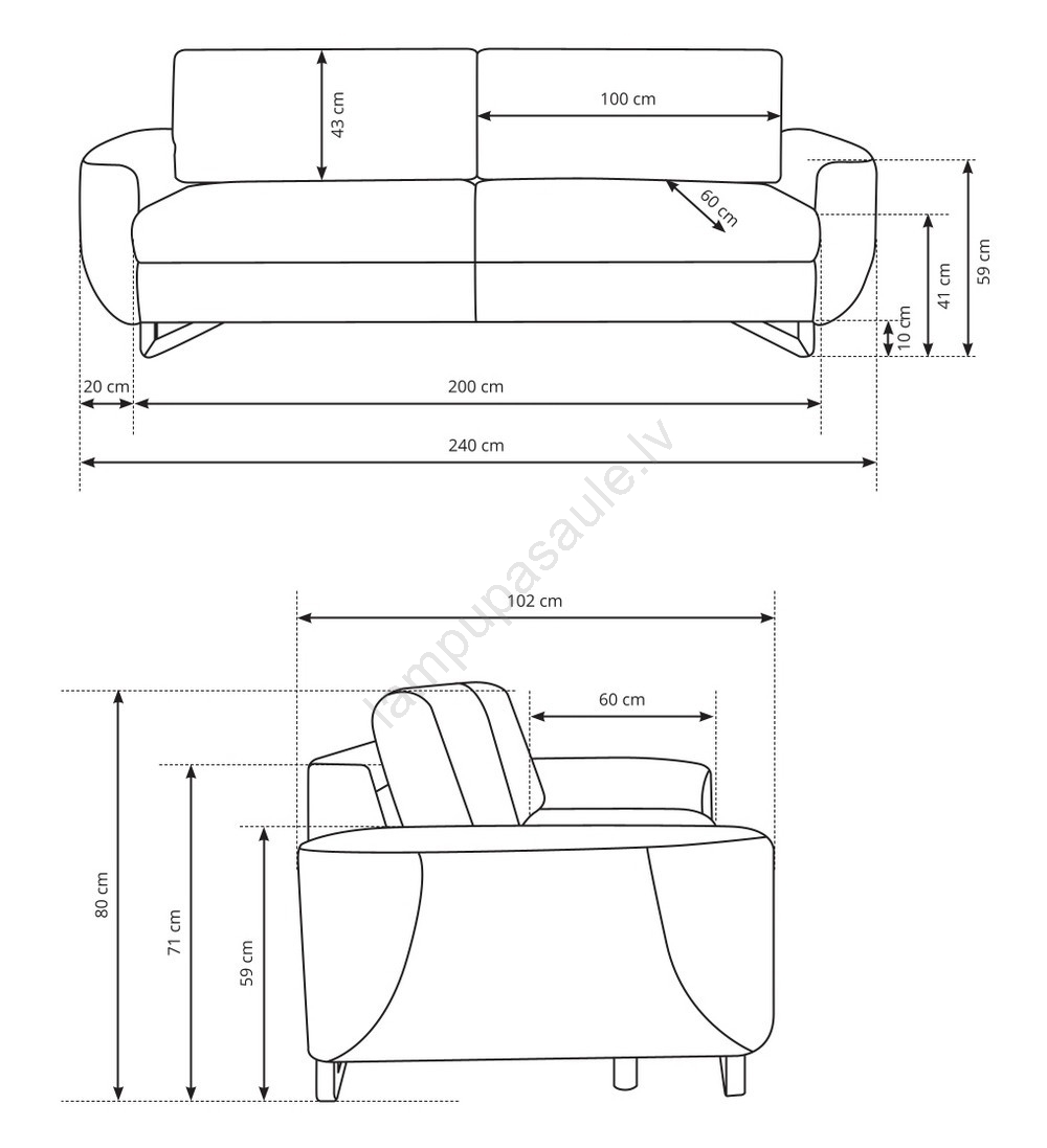 • Sēdēšanas dziļums 60 cm nodrošina pietiekami daudz vietas atslābinātai un ergonomiskai sēdēšanai.