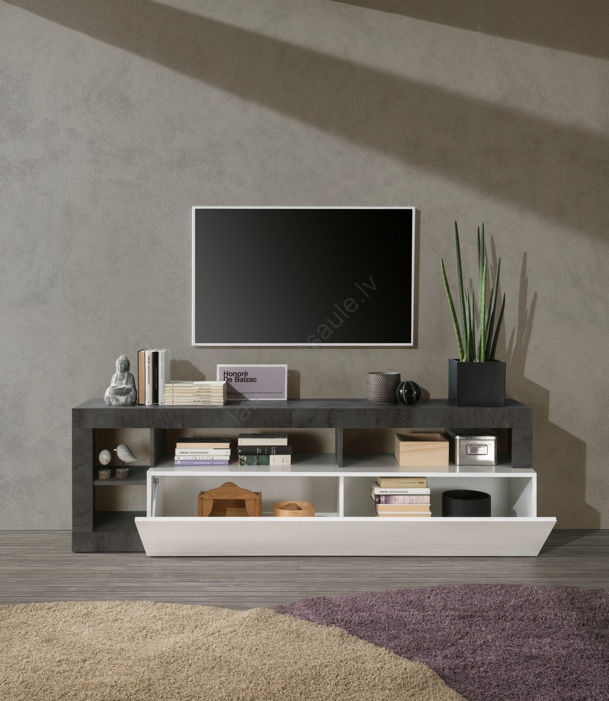 • TV galds LENOR balts/pelēks (betona efekts)