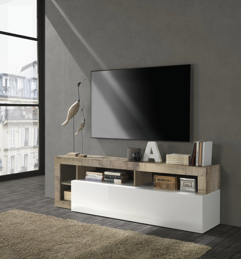 • Apatējais nodalījums un atvērtie plaukti piedāvā vietu grāmatām, dekorācijām un mājsaimniecības piederumiem.