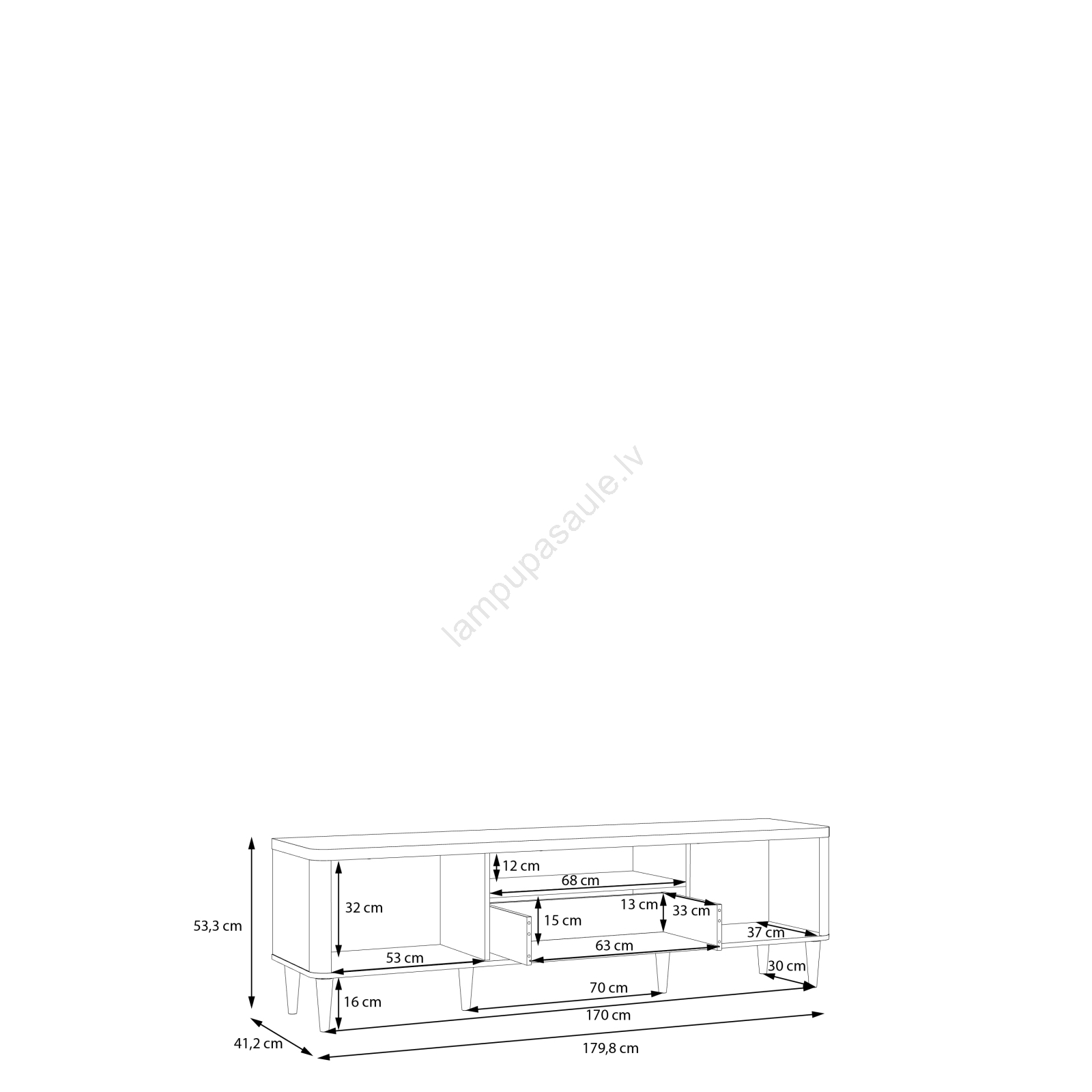 • Augšējā virsma ir pietiekami plaša dekoru, elektronikas ierīču un citu nepieciešamo priekšmetu izvietošanai.