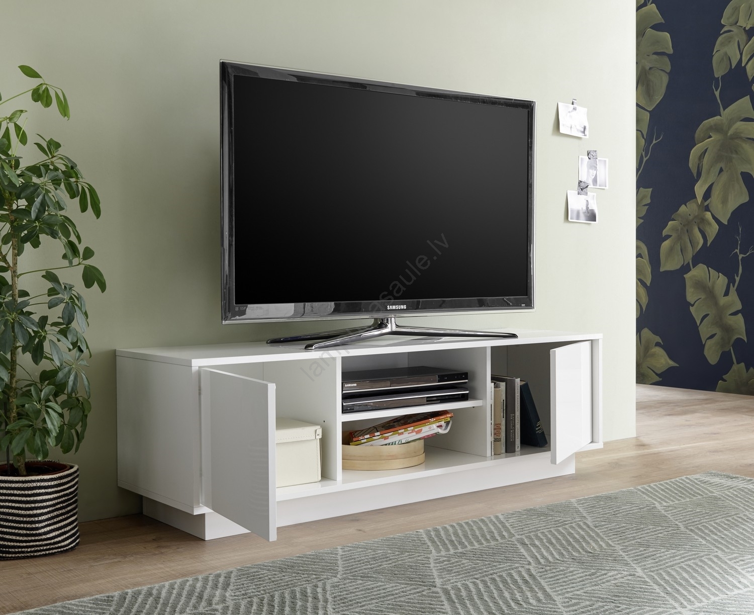 • Apakšējie nodalījumi un atvērtie plaukti piedāvā vietu grāmatām, dekorācijām un mājsaimniecības piederumiem.